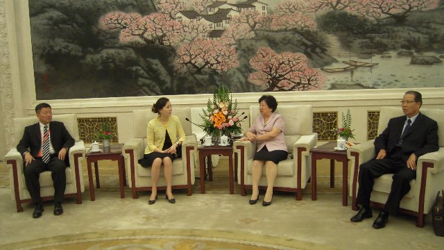 全国人大华侨委委员、中国侨联副主席李昭玲(右二)在人民大会堂会见了法顾委海外律师委员一行,左一为王志东律师
