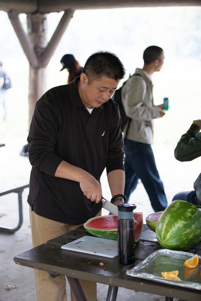 中美东北商会董事长赵冰辉先生亲自为我们切西瓜