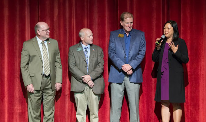 Naperville市议员DouglasKrause,Paul Hinterlong,JoeMcElroy及伊州州长Pat Quinn亚裔代表马静仪