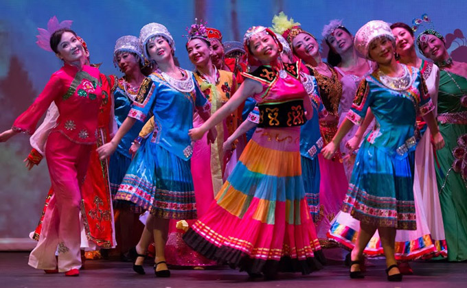 共同欣赏一场精彩的文艺演出。 东方艺术团精心排练的舞蹈、声乐、戏曲精品以及原创小品,让艺术之花在这个金秋皓月绚丽绽放。中国著名歌唱家杨学进,为芝加哥地区侨胞倾情献艺,并与东方艺术团团长包敏合唱《新世纪艳阳天》,将晚会的气氛推向高潮。演出谢幕之时,全场观众们起立,掌声经久不息,意犹未尽。