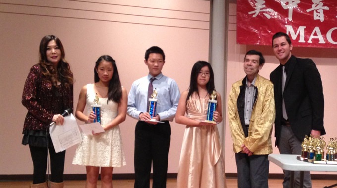 2013中華音樂節鋼琴大賽暨等級鑑定考試, 10月27日在西郊華僑文教中心隆重举行。来自不同族裔的50名参赛者参加钢琴演奏比赛及等级鉴定考试,其中曾卓凡、鍾玥霖、胡青青获各年龄组第一名。