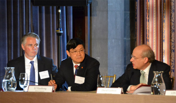 “中美高水平大学校长圆桌会议” 18日在芝加哥大学举行,左为芝加哥大学校长Robert Zimmer