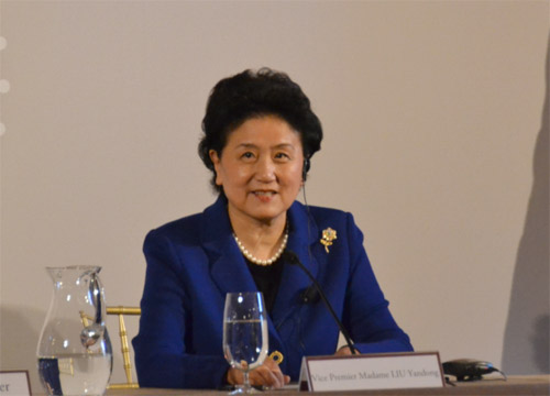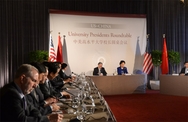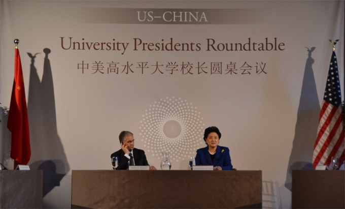 刘延东副总理表示,她很高兴应邀参加本次圆桌会议,并向为中美高等教育合作作出贡献的校长、教授、科学家们致以诚挚的问候。刘延东表示,中美大学的交流合作搭建起两国友谊的桥梁,成为双边人文交流中最为密切、最有成效的领域之一,对促进中美关系发挥着独特作用。