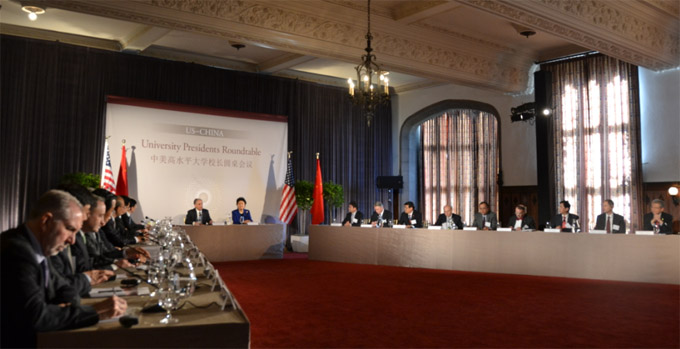 11月8日在芝加哥大学举行的“中美高水平大学校长圆桌会议”,是由芝加哥大学、北京大学、莱斯大学共同主办,共有北京大学、上海交大、浙江大学、杜克大学、加州理工学院、华盛顿大学、圣母大学等23所中美双方高等院校校长出席。
