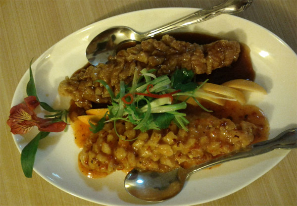 一盘松鼠鱼,一半辣一半不辣,截然不同的两种口味