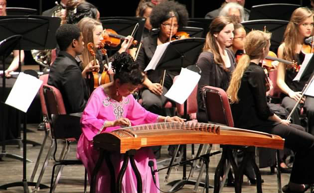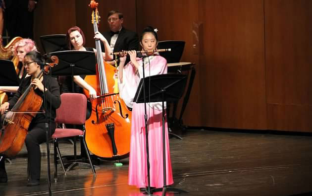 这场名为“中西经典”的音乐会在由密苏里大学交响乐队著名指挥家Robert Howard 带领他的乐队以经典作品“魔笛”开场;紧接着黄河艺术团团长、古筝演奏家杨左与乐队合作,以一曲古筝协奏曲“临安遗恨”震撼了所有观众,她的演奏富于激情、奔放自如,将强烈的艺术感染力将听众带入作品的意境之中。