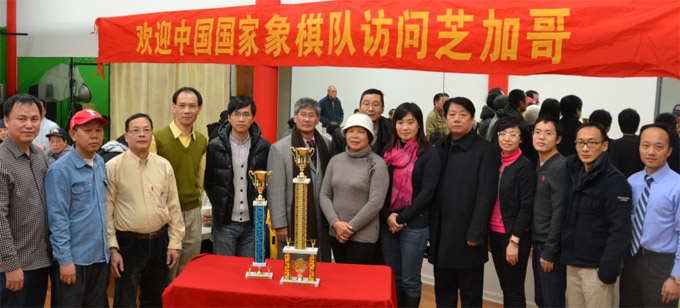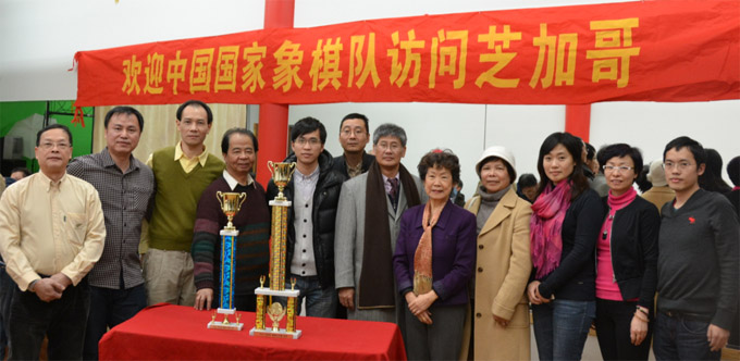 本次中国国家象棋队代表团,由中国国家体育总局棋牌中心象棋部副主任、中国象棋协会副秘书长、世界象棋锦标赛冠军得主郭莉萍率领,成员包括世界象棋锦标赛冠军鑫鑫、汪洋、张国凤等六人。代表团一行还特别为刚刚结束的2013年芝加哥中国象棋公开赛前三甲颁奖。
