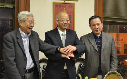 精诚团结。左起:元老黄景雄、主席马森柱、主席谭建国