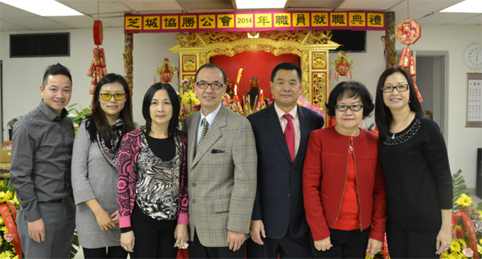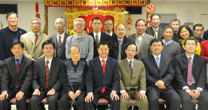 芝加哥侨学网报道】芝城协胜公会2014届新职员就职典礼,12月28日在协胜公会礼堂隆重举行。新届主席陈羡韶、蔡锡锋在海峡两岸代表、各界侨社友好的见证下,带领新届职员正式宣誓就职,并呼吁大家团结协作,为促进侨社繁荣团结再作贡献。