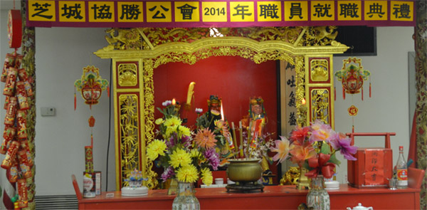 当晚的就职典礼由钟君铭主持,蔡锡锋、陈羡韶两位新任主席,带领新届职员在关公神像前宣读就职誓词,气氛庄严隆重。协胜公会主席陈羡韶当天首先代表协胜公会全体同仁,感谢海峡两岸代表,以及安良、洪门、中华会馆、林西河堂、两会等侨界友好的光临。陈羡韶主席感谢协胜公会全体同仁的信任与支持,希望在新的一年中大家同心协力,发展会务,再创佳绩。