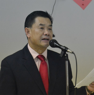 侨界友好致辞,左为华联会常务副主席赵健航,右为中华会馆董事长区一平