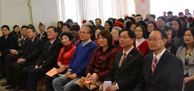 卸任主席徐学明,在退职辞中回顾了2013年以来中华会馆各项会务工作的成就,包括充分利用各种社会资源,扩展服务,为侨胞提供免费医疗检查、举办卫生培训班、电脑班、舞蹈班等;中华学校提供中文教育,传承中华文化,老人餐服务则为越来越多的耆老造福,特别是在T2 CARES的帮助下,老人餐餐厅已装修一新;2013年9月泛美中华会馆、中华联谊会年会在芝加哥盛大举行,并取得圆满成功,这些都离不开中华会馆历届前主席、董事、各参事团体的支持,他呼吁大家在新一年中继续努力,团结努力,再创辉煌。