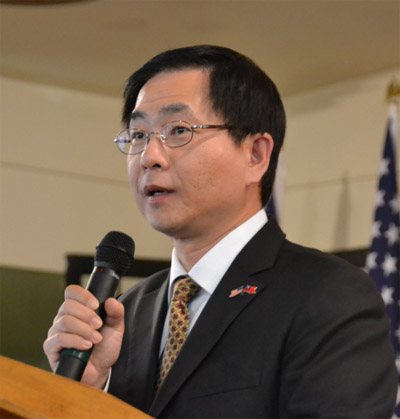 中华会馆新任主席刘国新当天发表热情洋溢的就职演说,刘国新首先感谢大家对他的信任与支持,并指出他将竭尽所能、全心全意,贯彻执行会馆「服务侨胞、造福侨社、融入主流」宗旨,服务侨胞,造福社区,促进中美友谊。