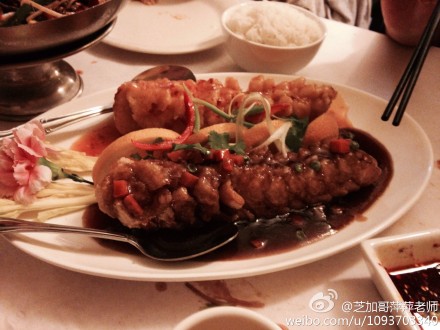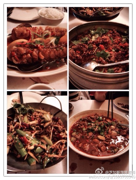 的双味松鼠鱼,口水鸡,凉拌折耳根,粉蒸羊肉,自贡新鲜锅兔。 (转自