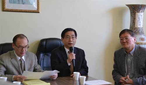 左起:中华会馆主席刘国新、台北经文处葛葆萱处长、中华会馆董事长区一平