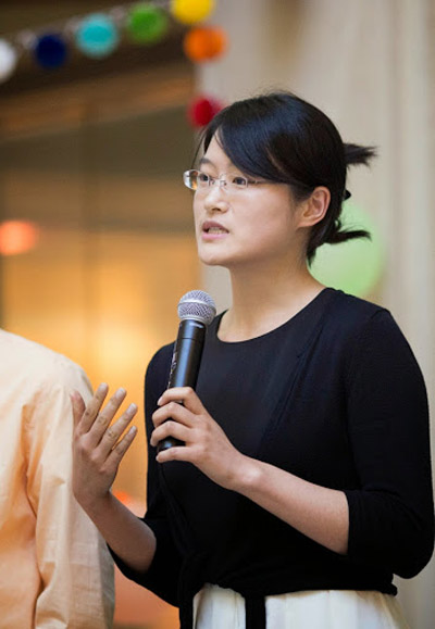 林洁婕校友(光华05, Kellogg MBA2014)代表应届毕业生首先登台发言。北大芝加哥校友会会长林牧(北大西语81),则代表校友致辞。林会长发言中,祝福2014年毕业的师弟师妹们,“有勇气面对真实的自己,有智慧应付未知的挑战,更有耐心看到春花秋实。”
