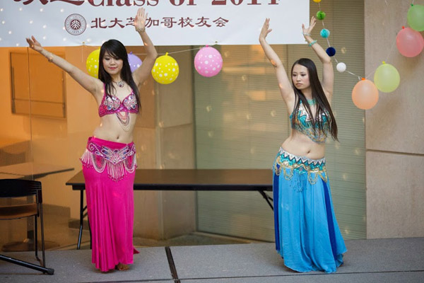 当天的文艺节目,充分体现了北大校友的人才济济。北大校友和北大之友表演了孔雀舞(余音,光华05),肚皮舞(刘言婕,王澄紫)和原创(曹乐群,78医学;朱天鸣,95生物)歌曲《钓鱼岛》以表达由衷的祝福和惜别之情。西北大学新闻传播系的刘可欣同学应邀主持了整场晚会。晚会还请到了芝加哥当红DJ打碟助兴。
