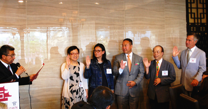 芝城华商会2014-2015新职员暨2014-2016新董事成员就职典礼,于8月5日晚在中国城万寿宫饭店举行。新一任华商会主席谭小平,董事长陈伟民以及新一届干事和董事会成员在25区区长苏礼仕的带领下进行了简单、庄严的就职典礼。