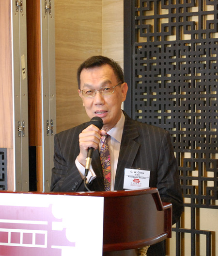 谭小平会长首先对各位来宾表示欢迎。他提到了他的父亲谭继平先生,谭继平先生是华商会的创办人之一,也是首任会长,谭小平会长也希望能够向他的父亲学习。他表示现在仍有许多问题有待解决,但他有信心并且已经做好准备去解决它们。因为有祖父和父亲等老一辈侨领奋斗多年的基业在支撑,也有现在团队们一起努力的决心来奋斗。