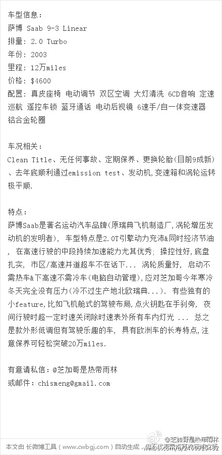 » 芝加哥卖车, 超高性价比!!2003年 萨博 Saab 9-3