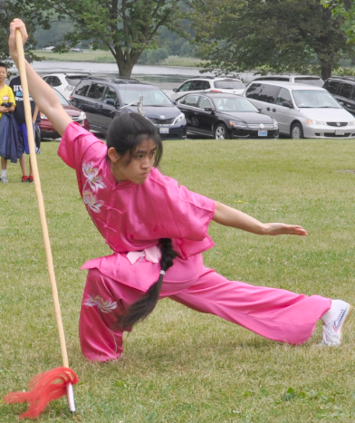 在享受野餐美食之后,飞鹰功夫学院为大家表演中国功夫。飞鹰功夫学院的创立人宋开飞师父是芝加哥地区唯一一个具有由中国体育学院(Academy of Chinese Martial Arts)授予一级运动员,一级裁判员, 一级教练员三项荣誉头衔的功夫大师,当天带领着未来的功夫传人为各位湖南老乡乡及与会嘉宾展示了精彩的武术表演,博得在场观众欢呼叫好,掌声如雷,大家都被飞鹰功夫学 院的精湛表演所折服。功夫表演之后。随后,本次活动赞助商美国纽约人寿代表Lucy Xu也忍不住高歌一曲 富有草原风味的民歌《玛依拉》,精湛的歌艺折服了在场的所有观众,美妙的旋律把观众带去了遥远的美丽新疆。