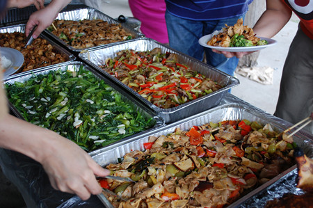 午后,活动在各式各样的美食中正式开始。晓军美食集团(Tony Gourmet Group)老湖南赞助的辣子鸡、湖南腊肉颇受大家喜爱;皇上皇(BBQKing House)赞助了一整只烤乳猪,外焦里嫩,美味又好看,引得大家争相合影;现场烧烤的大虾和羊肉串更是被一抢而空。除此以外,渔友们还自制了糟凤爪、盐水毛豆、银耳羹等各色小食,购买了各式新鲜蔬果、甜点、零食以及饮料。丰富美味的菜品可以称得上是野餐中的“满汉全席”。