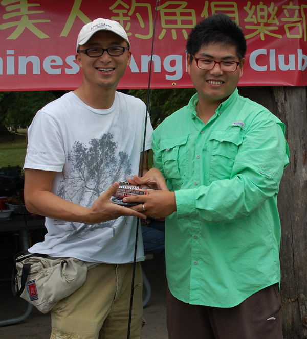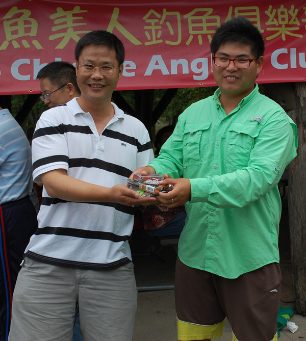 酒足饭饱之后,俱乐部举行简短仪式。在“鱼美人”钓鱼俱乐部最受欢迎的贴心大姐“A姐”,主持当日的仪式。A姐宣布了俱乐部版主韩宇,以及陈秋润(UIUC在读留学生)今年三月参加BassMaster 钓鲈大赛大学组公开赛的好消息,这是该赛事自1967年以来首次迎来中国选手参赛,而且首次参赛就取得了不俗的好成绩。大家随即以热烈掌声,鼓励二人为华人争光,为中国人争光。