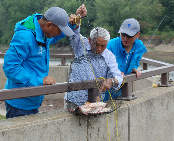 此次活动中的另一大亮点就是北京电视台“四海钓鱼”频道的交流。在“钓鱼王”渔具公司的支持下,“钓鱼王. 援美钓猎鲤行”目前正在亚洲鲤鱼泛滥的伊利诺伊河拍摄用中国饵钓美国鱼的节目。