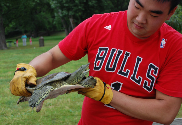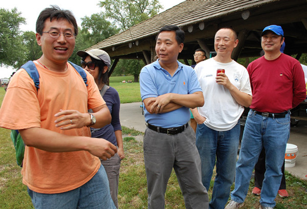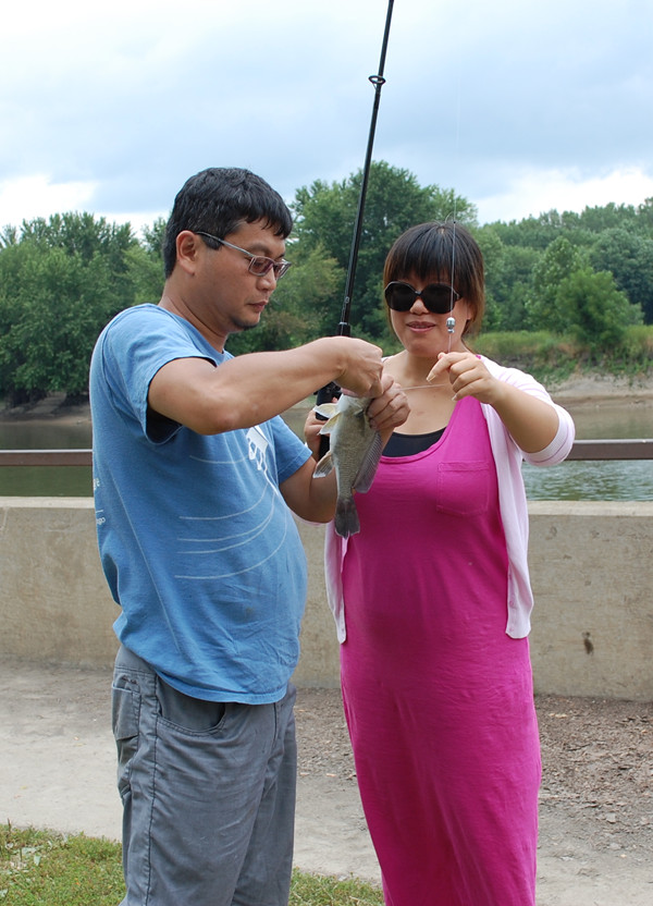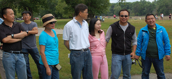 本次活动的另一大特色,是接待来自祖国的垂钓高手切磋交流。北京电视台“四海钓鱼”节目制作组目前正在伊州利伊河流域进行“钓鱼王. 援美钓猎鲤行”系列的拍摄活动。该节目组提前与“鱼美人钓鱼俱乐部”取得联系后,大家决定把年度聚会地点定在“饿石州立公园”,以方便鱼来自中国的钓手交流。