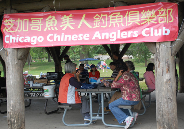 【芝加哥侨学网记者边媛报道】芝加哥鱼美人俱乐部8月16日在“饿石州立公园”(Starved RockState Park)隆重举行2014年度聚会。来自大芝加哥地区、香槟城,以及威斯康辛、印第安纳州的七十多位俱乐部成员及亲友欢聚一堂,大家切磋钓技,新老朋友交流联谊,享用“满汉全席”级的丰盛野餐美食,同时还在坝边挥竿实战,共享欢乐时光。