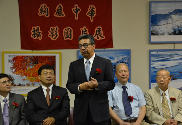 中国驻芝加哥总领事馆王永副总领事、侨务组岑建德领事,芝加哥市第25区区长苏礼仕(Danny Solis), 华联会主席汪兴无、美中文化艺术中心主席何达权、华埠图书馆馆长陈思,以及中国侨联海外委员马森柱,中国侨联海外顾问丘超廉、陈俊义,华联会常务理事沈如霞等嘉宾,出席了当日摄影展开幕式。