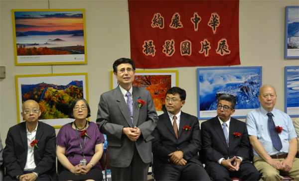 芝加哥侨学网报道】“绚丽中华摄影图片展”8月19日在南华埠公共图书馆隆重开幕,参展的60多幅摄影佳作,将中国的壮丽河山、秀美山水、饮食文化以独特的视角体现出来,让海外侨胞再次感受到中国形象的正能量。“绚丽中华摄影图片展”是由由大芝加哥地区华侨华人联合会(华联会)、美中文化艺术中心、芝加哥华埠图书馆将联合举办,本次展览是大芝加哥地区华人华侨庆祝祖国65周年大庆的系列活动之一。