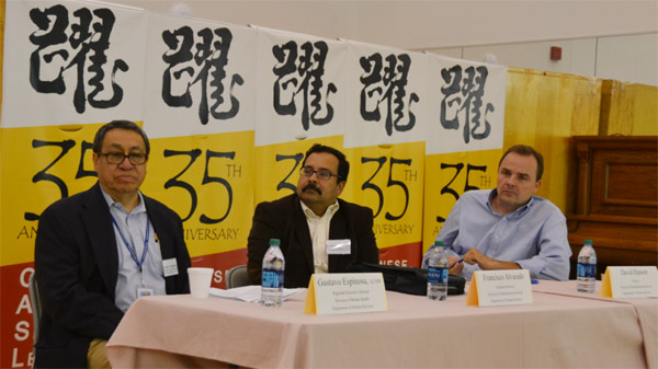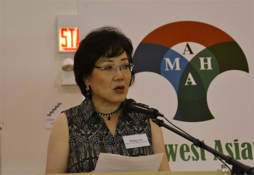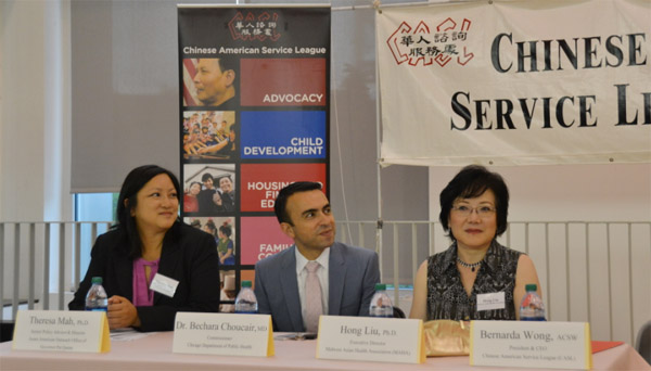 坐起:伊州州长亚裔代表马静仪,芝加哥公共卫生局局长Dr. Bechara Choucair, 刘红博士