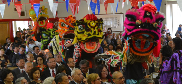 开幕式现场,右一为中华会馆主席、美洲协胜公会专员刘国新