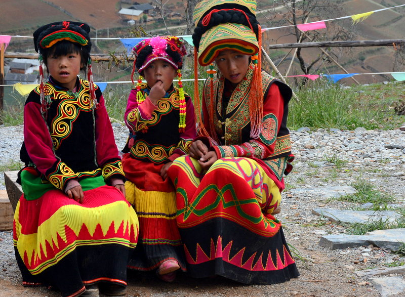 The last shot was taken in Yunnan during a trip this June en route to Shanga-ri-la (Spelling ?) These three sisters are Tibetans but speak Han Yu. The middle size girl asked me for money for school expenses after I took the picture. I laughed and gladly gave her 10 RMB, which is plenty to compare with others'. Other donors gave them coins of 10 cents or 50 cents. The big sister seemed reluctant to let her sister ask for money. She remained to be shy, calm, but in dignity.