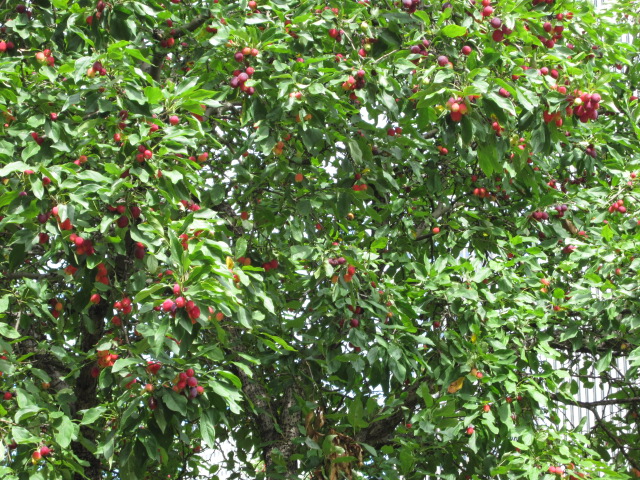 湖旁,樹上卦滿了紅彤彤的紅果子,很美,但小鳥和松鼠都不吃,可見很難吃!我在想,如過是荔