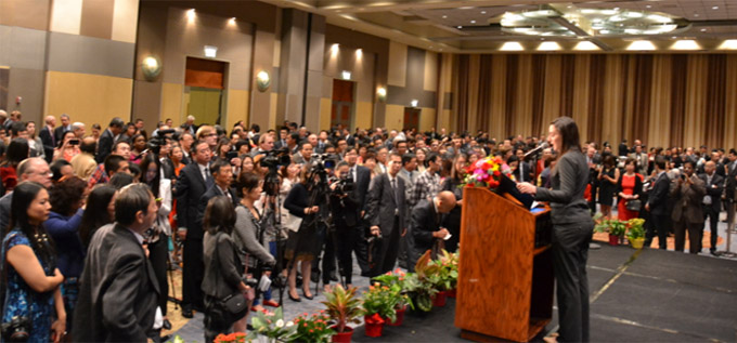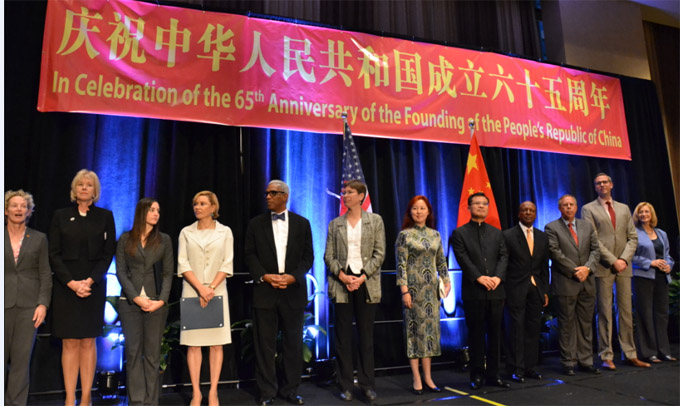 芝加哥侨学网报道】中国驻芝加哥总领事馆赵卫平总领事及夫人,9月23日在芝加哥市中心凯悦饭店 (Hyatt Regency Chicago)隆重举办庆祝中国国庆65周年招待会,来自芝加哥及总领事馆九州辖区的侨学各界代表,主流社会政要嘉宾共600多人应邀出席。