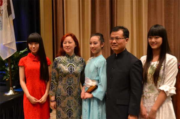 当天各界主流政要也应邀致词,对中国65周年国庆表示祝贺,表示乐见中美友好交流的进一步发展。在当天的活动上,哥伦比亚艺术学院、普渡大学中国留学生为大家带来《梁祝》芭蕾舞、古筝表演。(图文: