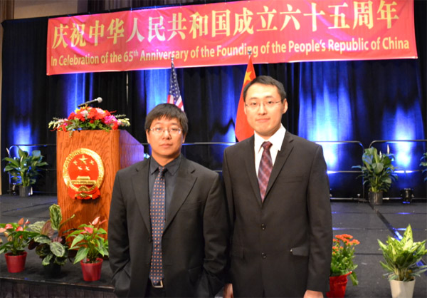 来自威斯康辛麦迪逊的侨领领袖,左为科工专麦迪逊分会会长蒋勇,右为副会长张颖