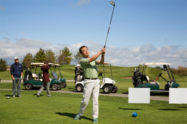 随着中国驻芝加哥总领事赵卫平挥出漂亮的一杆,太阳也从云端悄然地露出笑脸,照亮了断箭高尔夫乡村俱乐部绿意盎然的球场,在早晨的阴霾里顶着初秋的冷风匆匆赶到球场的球员们顿时发出了欣喜的欢呼。