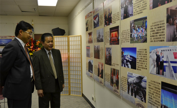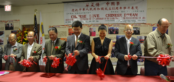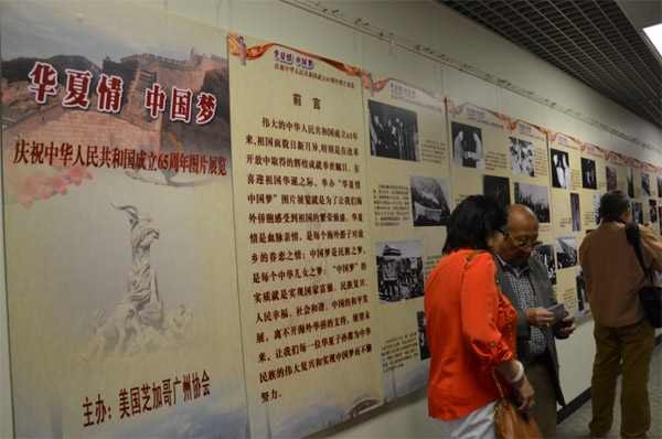 【芝加哥侨学网记者边媛报道】10月1日国庆节,由芝加哥广州协会举办的“华夏情·中国梦”图片展当天在中国城公共图书馆隆重开幕,作为大芝加哥地区华侨华人庆祝中国建国65周年的众多活动之一,图片展以图片、诗词,书画的形式,向芝城中西各界介绍中华人民共和国成立以来的历史,特别改革开放所取得伟大成就与全新面貌。