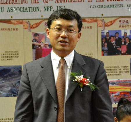 剪彩仪式由广州协会顾问邓衍辉主持。广州协会会长史卫明和25区区长代表李曼雯都对此次祖国生日以及图片展献上深深祝福并对各界华人华侨对此次活动的大力支持表示感谢。王永副总领事更是提到此次活动让他颇有感触,图片展览把新中国成立65周年以来的重要历史瞬间都展示给海外华人欣赏,也有利于美国主流社会了解中国,促进中美关系友好发展。