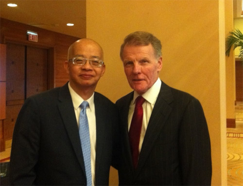 伊州民主党委员会主席 Michael Madigan (右) 与马森柱合影