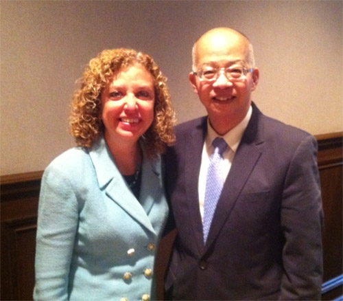 民主党全国委员会主席 Debbie Wasserman Schultz (左)与马森柱合影留念
