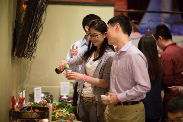 104日,DEPAUL,SAIC,LOYOLA三校CSSA发起联谊大会。盛装打扮的俊男美女相约在幽静浪漫的Thalia餐厅,享用丰富精致的东南亚菜品自助的同时,在知名主持人包子的带领下互动游戏,结交好友。