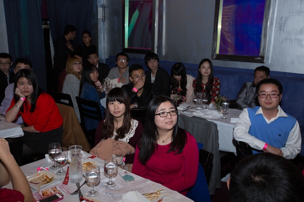 本次联谊的目的旨在鼓励芝加哥地区的广大中国学子走出校园,了解姊妹学校及芝加哥地区的青年华人精英们。晚餐于6时左右开始,男男女女穿插入座,品尝美食,谈笑风生。用餐结束后在包子的主持下,游戏开始。先后经历了扳手腕,真心话大冒险等游戏。席间,芝加哥著名歌手沈育宏即兴为大家演唱《情非得已》。模拟表白的游戏环节最令人捧腹,两对抽签抽中的单身男女分别要酝酿一下向对方表白。其中一名男生所说“虽然我还不知道你的名字,虽然你并不漂亮,但是我喜欢你”一番话引发哄堂大笑。之后这对男女被邀请参加UC即将举办的“非诚勿扰”。