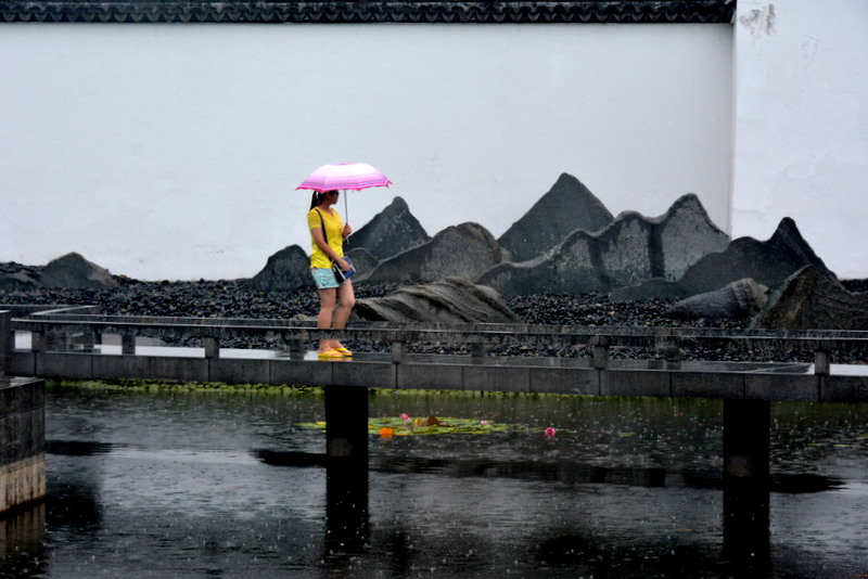 打伞过桥的那张很好。