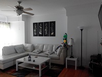 精装修house三楼的1间卧室出租,中央空调供暖,提供床、书桌、转椅、书架、电暖风等家具,有独立壁橱、冷暖空调、地毯、两人共用带浴盆的卫生间,卧室有大窗户,采光通风都很好,带洗衣机和烘干机,家庭使用,干净卫生。2楼有客厅和大厨房+餐厅,冰箱、洗碗机、微波炉、煤气灶齐全, 各类餐具齐全,大餐桌可供六人用餐,另吧台可坐两人用餐或聊天。客厅有沙发、电视机、卫生间。1楼有车库,免费停车,也可以就近街趴,house带安保系统,可放心居住。