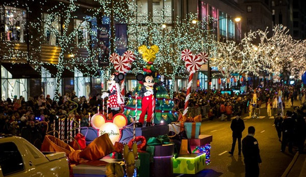 不过精彩尽在晚间,当天的“辉煌一英里亮灯游行”,将一如既往地由著名的迪斯尼卡通人物米老鼠领军,来自佛州迪斯尼乐园的众多卡通人物将是孩子们最佳期待。参加游行的30支花车,还有游行乐队、巨型气球、名人,当然还有圣诞老人向人们提前送来节日的祝福。