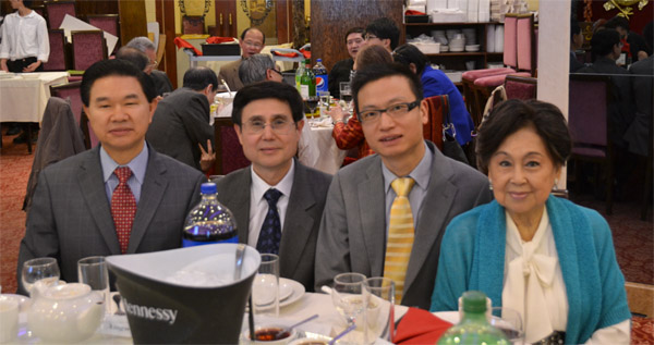 与会嘉宾,左起:华裔企业家黄大清、华联会主席汪兴无、华联会理事长胡晓军、上海同乡会会长沈如霞